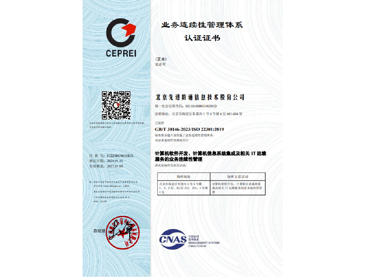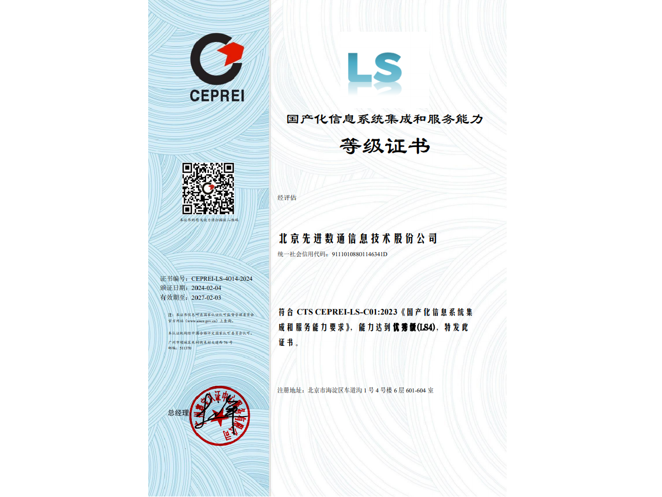 EBET易博(中国)先后取得CMMIL5、软件能力成熟度五级(SPCA 5)、信息系统建设和服务能力评估体系(CS)5级、ITSS成熟度一级、信息系统安全集成服务资质二级、信息系统安全运维服务资质二级、国产化信息系统集成和服务能力评估四级(LS4)、北京市企业技术中心等资质认证,并取得ISO9001、ISO20000、ISO27001、ISO14001、ISO45001、ISO22301、ISO37001、ISO28001、GBT29490等标准体系认证,具备行业领先的技术开发、工程实施及服务保障能力。