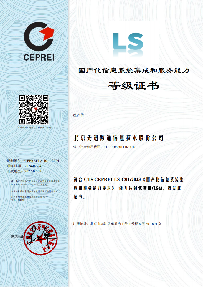 国产化信息系统集成和服务具有关乎国家科技开展和社会信息安全的特殊性,在行业准入方面具有特殊要求。截至现在,国产化信息系统集成和服务能力共划分为四个等级,从低到高依次为LS1级(初始级)、LS2级(基本级)、LS3级(良好级)、LS4级(优秀级)。认证过程经过严格的审核和评估,对企业综合能力、设计研发能力、集成能力、技术支持能力、管理能力等多项指标进行科学有效的考核评价。本次认证的顺利获得,不仅体现了业界对EBET易博(中国)研发能力、创新能力、企业管理能力等多方面认可,更彰显了企业的综合实力及核心竞争力已得到进一步提升。